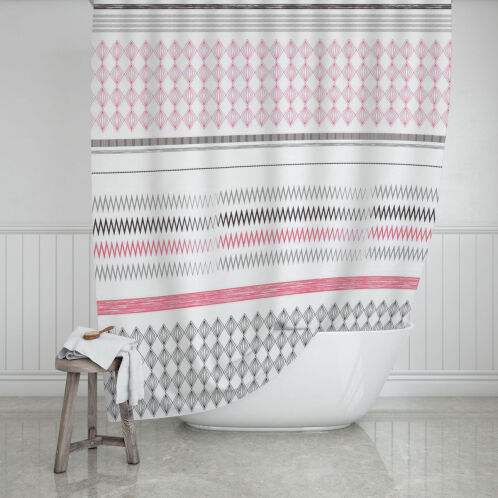 Estia Stripes Κουρτίνα Μπάνιου Υφασμάτινη 180x200 cm Ροζ
