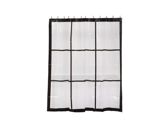 Κουρτίνα μπάνιου διάφανη με σχέδιο παράθυρο σε μαύρο χρώμα, 180x180 cm Shower Curtain Η κουρτίνα είναι απαραιτητη για κάθε μπάνιο καθώς δεν αφήνει νερά να πέσουν εκτός της μπανιέρας κατά την διαδικασία του ντους σας. Η υποφαινόμενη κουρτίνα είναι κατασκευασμένη από πολυεστέρα σε μοντέρνο σχέδιο. Το σχέδιο και ο χρωματισμός του το κάνει ιδανικό και μοντέρνο για κάθε μπάνιο. Εύκολη τοποθέτηση και μοντέρνος σχεδιασμός για ένα απαραίτητο εργαλείο για το μπάνιο! Χαρακτηριστικά : Υλικό: 100% πολυεστέρας Χρώμα: Διάφανο Σχέδιο: παράθυρο Διαστάσεις: 180x180 cm Ιδανικό για κάθε μπάνιο