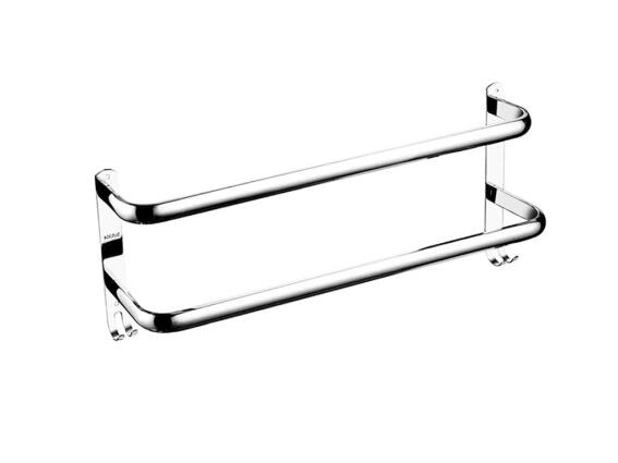 Κρεμάστρα μπάνιου διπλή επιτοίχια με γάντζους, από ανοξείδωτο ατσάλι, χρώμα Ιnox, 60x11.5x17.5 cm Ο σύγχρονος και βελτιωμένος σχεδιασμός αυτής της επιτοίχιας ράγας πετσετών βοηθά στο να διατηρείται τακτοποιημένο το μπάνιο και τις πετσέτες σας. Μπορείτε να το χρησιμοποιήσετε τόσο στο μπάνιο όσο και στην κουζίνα για την προσεκτική τοποθέτηση των πετσετών και ποτηρόπανων. Το προϊόν είναι ανθεκτικό στην υγρασία και την τριβή, γεγονός που θα εξασφαλίσει μακρά και απρόσκοπτη χρήση. Χαρακτηριστικά προϊόντος: Ατσάλινη κρεμάστρα μπάνιου Κατασκευασμένο από συμπαγή ανοξείδωτο χάλυβα σε σκόνη επικαλυμμένη με μαύρο χρώμα. Το προϊόν είναι ανθεκτικό στην υγρασία και την τριβή, γεγονός που θα εξασφαλίσει μακρά και απρόσκοπτη χρήση. Η κρεμάστρα έχει δύο ράγες για να κρεμάτε πετσέτες. Πρόσθετοι γάντζοι (δύο ζεύγη) στο κάτω μέρος της κατασκευής. Τυπική βίδα στήριξης (περιλαμβάνονται όλα τα στοιχεία). Υλικό: ανοξείδωτο ατσάλι Αριθμός βραχιόνων: 2 Μήκος (πλάτος): 60 cm Βάθος: 11,5 cm Ύψος: 17,5 cm Χρώμα: ΙΝΟΧ ασημί