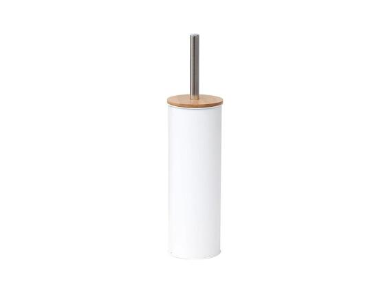 Μεταλλικό Πιγκάλ Μπάνιου σε λευκό χρώμα με καπάκι από Bamboo, 11x39.5 cm