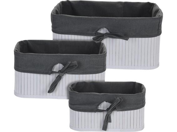 Σετ διακοσμητικά καλάθια Bamboo 3 τεμαχίων με λινό πανί, σε 3 μεγέθη