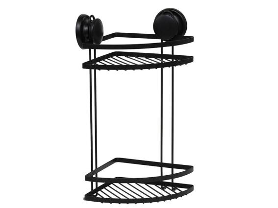 Γωνιακή Ραφιέρα Μπάνιου 2 Επιπέδων με Βεντούζες σε Μαύρο χρώμα, 20x20x39 cm