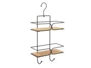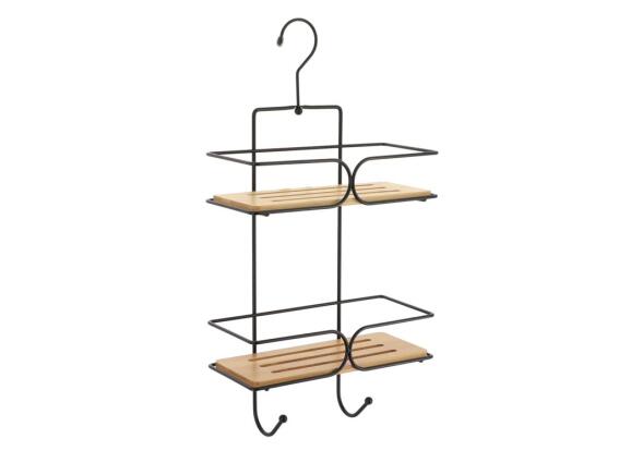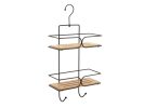 Ξύλινη ραφιέρα οργανωτής μπάνιου 2 επιπέδων με γάντζους και μαύρο μεταλλικό πλαίσιο