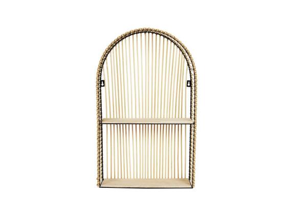 Μεταλλικό Ράφι Τοίχου με 2 Ράφια και Λεπτομέρειες από Ρατάν, 61x12x37 cm Τα ράφια τοίχου αποτελούν ένα ιδιαίτερα πρακτικό έπιπλο στο οποίο μπορείτε να τοποθετήσετε βιβλία, κορνίζες, διακοσμητικά στοιχεία ή οτιδήποτε άλλο θέλετε. Το εν λόγω ράφι διαθέτει μεταλλικό σκελετό και τα όμορφα ράφια της είναι τυλιγμένα με φυσικό υλικό ρατάν που δίνουν μια πιο ethnic λειτουργία. Τοποθετείται εύκολα στον τοίχο από τις δυο οπές που διαθέτει. Χαρακτηριστικά προϊόντος: Υλικό: Μέταλλο, Ρατάν Χρώμα: Μαύρη μεταλλική κατασκευή, Μπεζ φυσικό ρατάν 2 ράφια Επιτοίχια τοποθέτηση Διαστάσεις: 61x12x37 cm