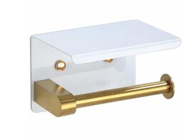 Επιτοίχια Βάση για Χαρτί Υγείας Μεταλλικό Ράφι σε Λευκό Χρυσό χρώμα, 14.3x10.2x9.5 cm