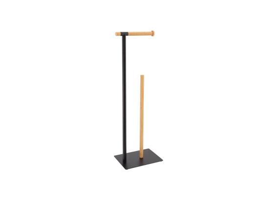 Μεταλλική Βάση για ρολό χαρτί υγείας σε μαύρο χρώμα με λεπτομέρειες από Bamboo, 20x20x64.5 cm
