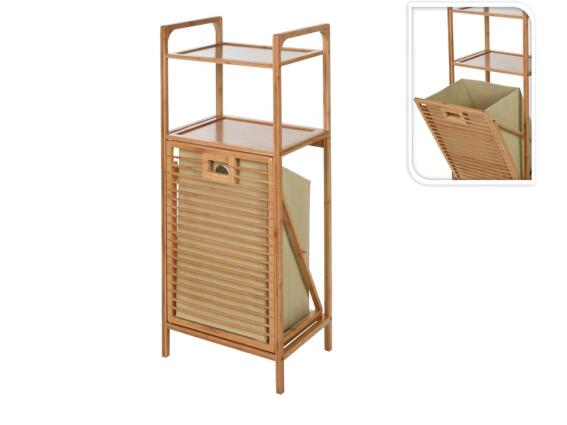 Ξύλινο Έπιπλο Μπάνιου με ενσωματωμένο καλάθι για τα άπλυτα και 2 ράφια, 40x30x95cm