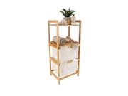 Ξύλινη Ραφιέρα Έπιπλο Μπάνιου από Bamboo, 1 ράφι και 2 συρτάρια καλάθια σε Λευκό χρώμα, 38x30x90 cm 2