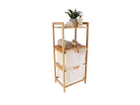 Ξύλινη Ραφιέρα Έπιπλο Μπάνιου από Bamboo, 1 ράφι και 2 συρτάρια καλάθια σε Λευκό χρώμα, 38x30x90 cm