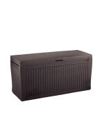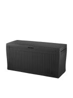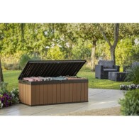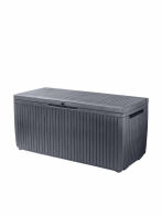Το μπαούλο αποθήκευσης είναι μια εξαιρετική προσθήκη στον κήπο, την βεράντα ή το μπαλκόνι σας. Αποθηκεύστε τα εργαλεία σας, τα παιχνίδια των παιδιών ή ό,τι άλλο επιθυμείτε και διατηρήστε το χώρο σας καθαρό και οργανωμένο. Είναι κατασκευασμένο από πολυπροπυλένιο και είναι ανθεκτικό στο χρόνο και τις ακραίες καιρικές συνθήκες.    Χαρακτηριστικά Χρώμα: Μαύρο, με όψη ξύλου Υλικό: Πολυπροπυλένιο Χωρητικότητα: 300lt Με ρόδες Διαστάσεις Μήκος: 120cm Πλάτος: 52cm Ύψος: 58cm Βάρος: 4.68kg
