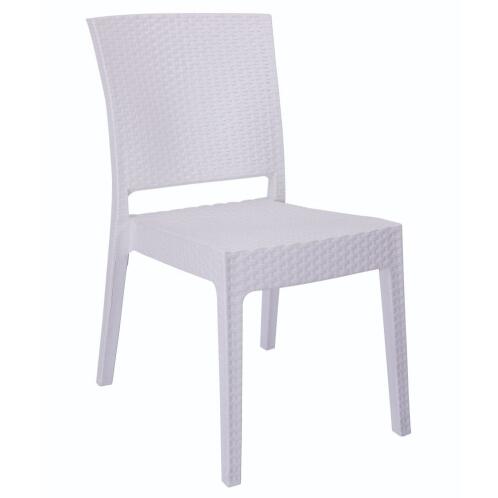 Καρέκλα κήπου πολυπροπυλενίου, με πλέξη rattan, πολύ ανθεκτικής κατασκευής σε λευκό χρώμα.