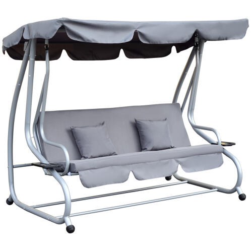 Outsunny Ανακλινόμενη κουνιστή πολυθρόνα 3 θέσεων με πολυεστερική οροφή γκρι 200 x 120 x 164 cm