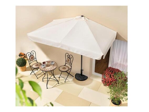 Ομπρέλα Τοίχου Ορθογώνια με πανί από Πολυεστέρα σε Λευκό χρώμα, 228x255x134 cm Μια υπέροχη ομπρέλα κήπου με πανί από πολυεστέρα σε λευκό χρώμα με προστασία 50+ από τη UV ακτινοβολία του ήλιου θα σας χαρίσει δροσιά τις ζεστές μέρες που θέλετε να περάσετε στον κηπο ή τη βεράντα σας. Έχει ορθογώνιο σχήμα ώστε να εφάπτεται ακριβώς με τον τοίχο, γεγονός που την κάνει ανθεκτική σε κάθε είδους καιρική συνθήκη. Η βάση της είναι φτιαγμένη από χάλυβα με διάμετρο 38 mm. Χαρακτηριστικά προϊόντος: Ορθογώνιο Σχήμα Υλικό πανιού: Πολυεστέρας Υλικό Βάσης: Χάλυβας Διαστάσεις: 228x255x134 cm