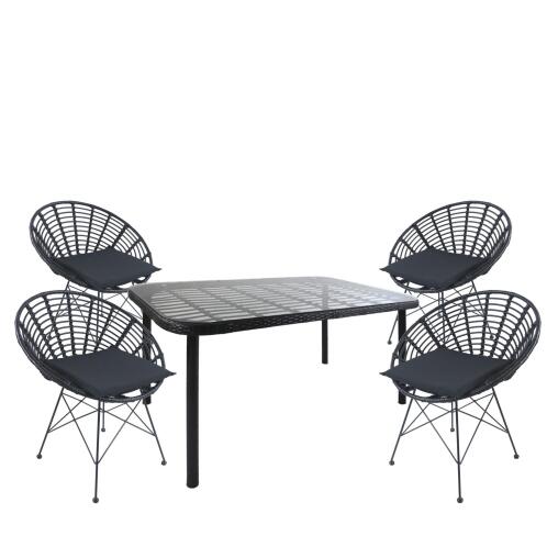 Σετ τραπεζαρία κήπου AMPLAS μαύρο μέταλλο/rattan/γυαλί με 4 καρέκλες.