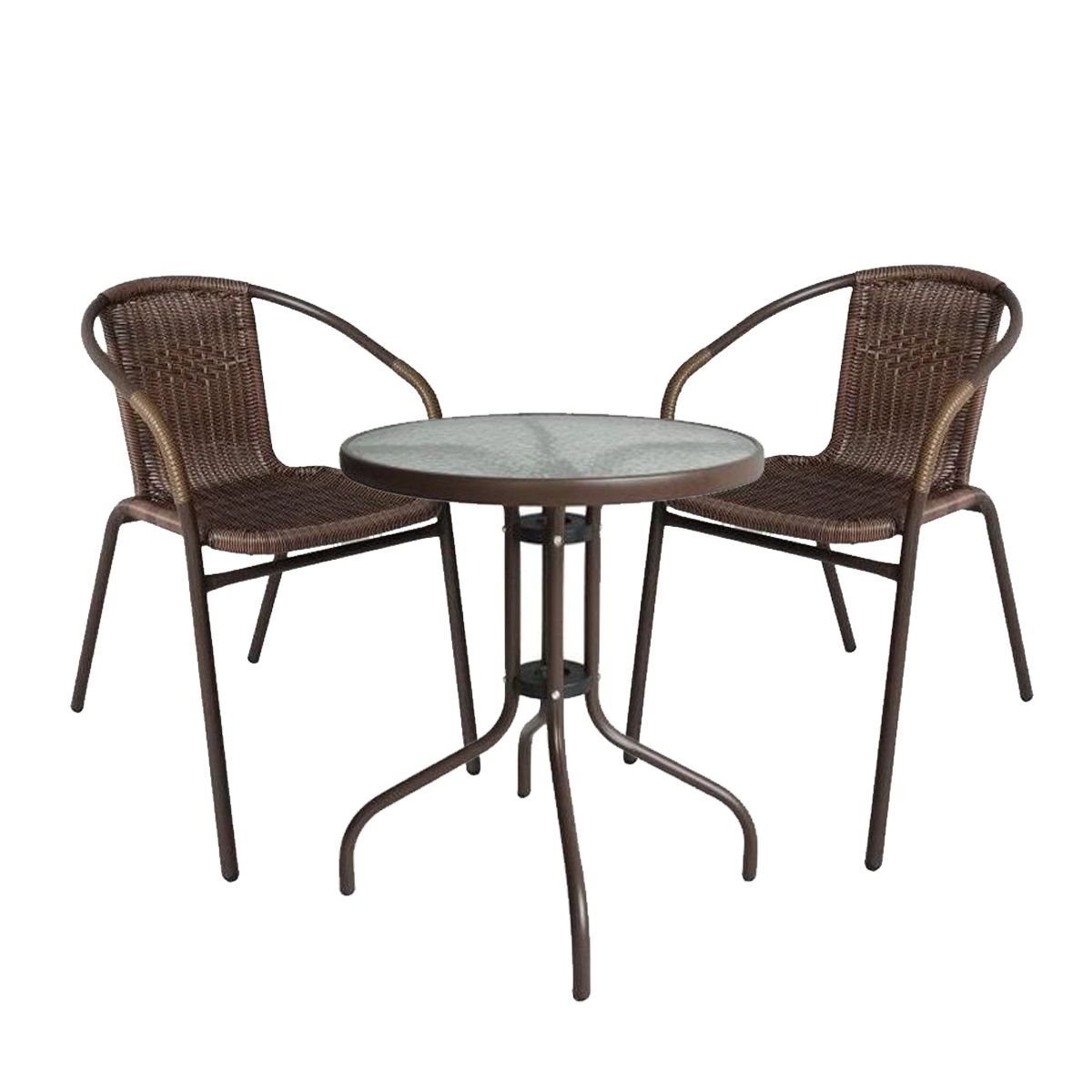 ArteLibre Σετ Τραπεζαρία Κήπου Earth Μέταλλο Καφέ Με 2 Πολυθρόνες