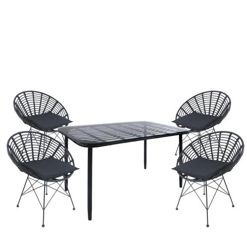 Σετ τραπεζαρία κήπου ANNIUS μαύρο μέταλλο/rattan/γυαλί με 4 καρέκλες.