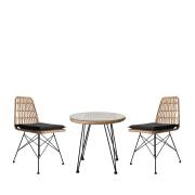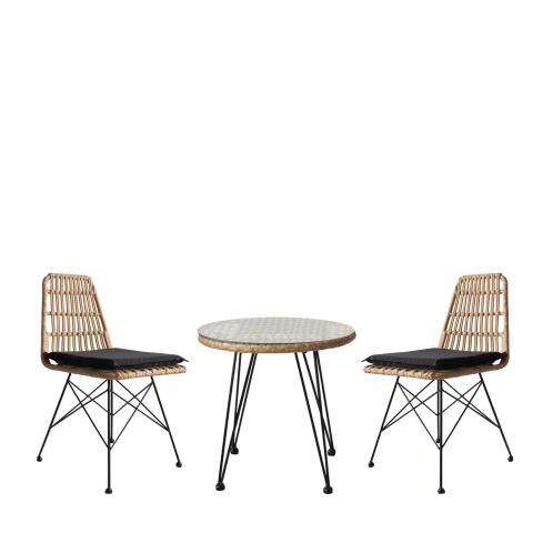 Σετ τραπεζαρία κήπου EUSEBIO φυσικό/μαύρο μέταλλο/rattan με 2 καρέκλες.