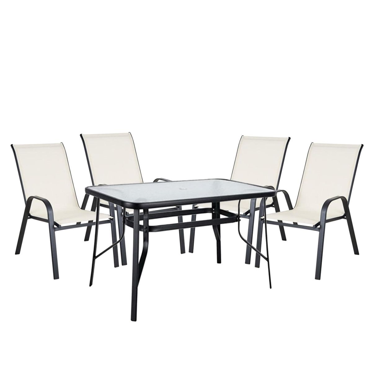 ARTELIBRE Σετ Τραπεζαρία Κήπου SUN Μέταλλο Κρεμ/Μαύρο Με 4 Πολυθρόνες
