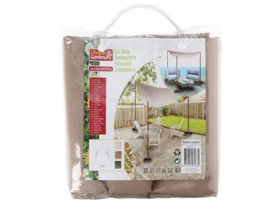 Αντηλιακή Τριγωνική Τέντα Σκίαστρο σε 3 χρώματα, 3.6x3.6x3.6 m Shade Cloth Triangle Η ιδανική τέντα για τον κήπο ή την αυλή σας με διαστάσεις 3,6 μέτρων και στις 3 πλευρές της. Διατίθεται σε 3 διαφορετικά χρώματα, ανοικτά και κλειστά, έτσι ώστε να κάνετε την καλύτερη επιλογή για την αυλή σας. Είναι αντηλιακή εμποδίζοντας τις ακτίνες του ήλιου να σας φτάσουν παρέχοντας σας την απαραίτητη στέγαση και σκίαση για να απολαύσετε την παρέα σας. Είναι πολύ καλά ραμμένο και αποτελείται από 100% πολυεστέρα. Σε μια ηλιόλουστη μέρα η συγκεκριμένη τέντα μπορεί να εμποδίσει έως και το 90% της ηλιακής ακτινοβολίας. Χαρακτηριστικά Υλικό: 100% πολυεστέρας Διαστάσεις: 3.6x3.6x3.6 m Αντηλιακή προστασία Αδιάβροχη - προστασία και απο την βροχή Εύκολη τοποθέτηση Ύφασμα που αναπνέει Τσάντα μεταφοράς