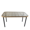 Τραπέζι κήπου ορθογώνιο κατασκευασμένο από ανθεκτικό μεταλλικό σκελετό με μεγάλα στιβαρά πόδια εξαιρετικής σταθερότητας και στιβαρότητας. Η επιφάνειά του είναι από υψηλής ποιότητας rattan, ενώ συμπληρώνεται από γυάλινη επιφάνεια για μεγαλύτερη αντοχή στην καθημερινή χρήση και για να προσφέρει μια επίπεδη επιφάνεια όπου θα μπορείτε να τοποθετείτε με ευκολία τον απογευματινό γεύμα ή καφέ σας.