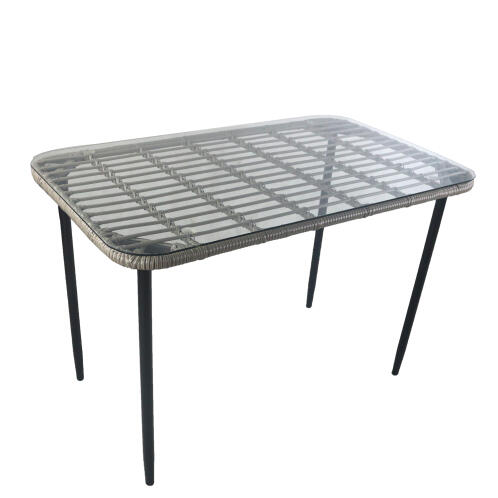 Arte Libre Τραπέζι Κήπου Annius Μέταλλο Rattan Γυαλί 120x70x78cm Γκρι Μαύρο 1