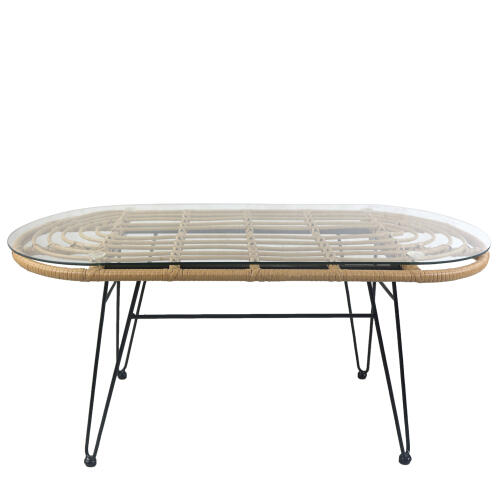 Artelibre Τραπέζι Κήπου Arrius Φυσικό/Μαύρο Μέταλλο/Rattan/Γυαλί 100x45x46cm