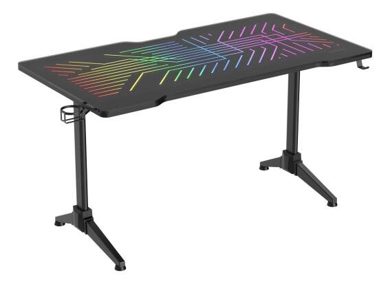 DELTACO GAMING DT420 RGB gaming desk, tempered glass, διαχείριση καλωδίων, θήκη για ποτήρια και ακουστικά, μαύρο Το DT420 είναι το γραφείο gaming για τους παίκτες που δεν μπορούν να ζήσουν χωρίς RGB. Στην κορυφή του DT420 θα βρείτε ένα μοτίβο LED εμπνευσμένο από τις γραμμές του μετρό της Στοκχόλμης. Το DT420 έχει πλάτος 140 cm, γεγονός που το καθιστά ίσως πιο κατάλληλο για εγκατάσταση μίας οθόνης, αλλά με λίγη έξυπνη τοποθέτηση οθόνης, μπορείτε να το προσαρμόσετε με δύο οθόνες. Η επιφάνεια του DT420 είναι από σκληρυμένο γυαλί (tempered glass) για να δώσει στο φωτισμό RGB αυτό το κάτι παραπάνω, ελέγχετε το RGB με τη βοήθεια του τηλεχειριστηρίου που περιλαμβάνεται. Στο πίσω μέρος του DT420 έχετε μια εγκοπή για εύκολη διαχείριση καλωδίων, από κάτω θα βρείτε επίσης ένα δίχτυ διαχείρισης καλωδίων για να ελέγχετε ακόμα περισσότερο την ακαταστασία καλωδίων που διαφορετικά δημιουργείται. Για να ολοκληρώσουμε το DT420, προσθέσαμε μια θήκη ποτηριού και μια θήκη ακουστικών, επειδή ξέρουμε ότι τα χρειάζεστε. - Φωτισμός RGB με μοτίβα εμπνευσμένα από τις γραμμές του μετρό της Στοκχόλμης - Σκληρυμένο γυαλί (Tempered Glass) - Θήκη για ποτήρι και ακουστικά - Δίχτυ διαχείρισης καλωδίων - Μέγιστο Βάρος Φορτίου: 80 kg - Διαστάσεις επιφάνειας τραπεζιού (ΠxΒxΥ): 140x75x28 cm - Διαστάσεις γραφείου (ΠxΒxΥ): 140x75x76cm - Βάρος γραφείου: 37 kg