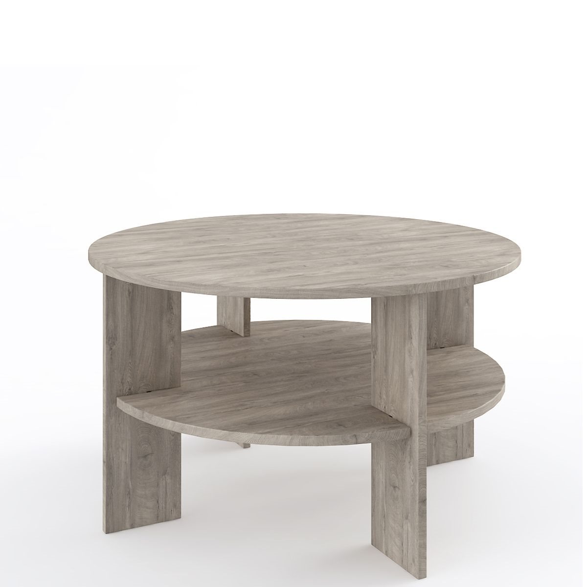 Tραπέζι στρογγυλό σαλονιού minimal αισθητικής και μοντέρνου design από μοριοσανίδα με επένδυση από υψηλής ποιότητας και εξαιρετικής αντοχής μελαμίνη. Σε απόχρωση γκρι δρυ η οποία προσδίδει μοντέρνο χαρακτήρα  στο χώρο σας και ολοκληρώνει τέλεια τη διακόσμηση του καθιστικού σας.