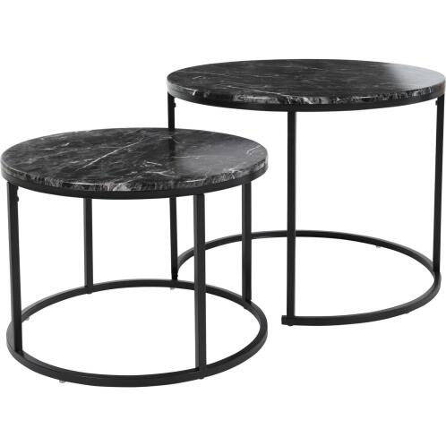 Τραπεζάκι βοηθητικό με όψη μαρμάρου μαύρο μέταλλο/MDF σετ 2τμχ.