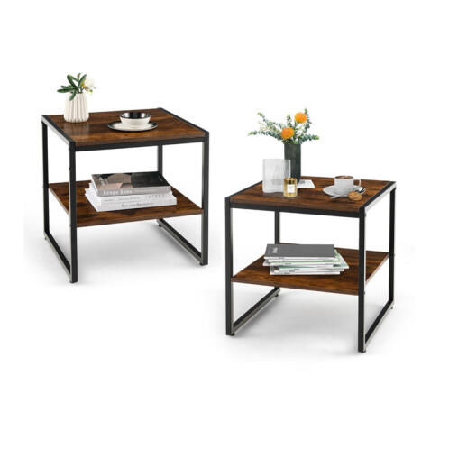 Costway Σετ Βοηθητικά Μεταλλικά Τραπεζάκια με 1 Ξύλινο Ράφι 50 x 50 x 50 cm 2 τμχ Costway JV10793CF-2 1