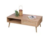 Ξύλινο Τραπεζάκι Σαλονιού, Τηλεόρασης με ράφι και συρτάρι, 110x59x39.5 cm, Coffee table Coffee table Τα coffee tables διαδραματίζουν λειτουργικό και ταυτόχρονα διακοσμητικό ρόλο σε έναν χώρο. Το τραπέζι αυτό διαθέτει σταθερή κατασκευή και χρειάζεται εύκολη συναρμολόγηση. Κατασκευασμένο από ξύλο MDF, το τραπεζάκι αυτό διαθέτει ραφάκι και συρτάρι. Το τραπέζι αυτό μπορεί να χρησιμοποιηθεί και ως τραπεζάκι τηλεόρασης. Μπορείτε να το τοποθετήσετε στο καθιστικό, το χωλ, το υπνοδωμάτιο ή τον επαγγελματικό σας χώρο, καθώς αποτελεί μία all time classic επιλογή διακόσμησης. Χαρακτηριστικά προϊόντος: Σταθερή κατασκευή Υλικό: Ξύλο MDF Με ράφι και συρτάρι Maximum βάρος (συρτάρι): 5 Kg Maximum βάρος (συνολικό): 50 Kg Βάρος: περίπου 21 kg Εύκολη συναρμολόγηση Διαστάσεις: 110 x 59 x 39.5 cm