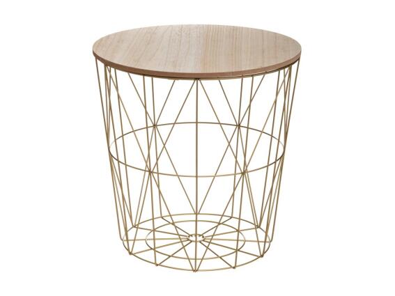 Μεταλλικό Στρογγυλό Τραπεζάκι Σαλονιού σε σχήμα καλαθιού σε χρυσό χρώμα, 41x40 cm, Side table 1
