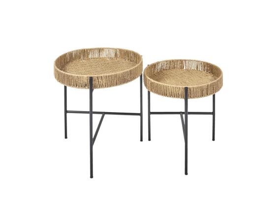 Σετ Βοηθητικά Τραπεζάκια Με Μεταλλικά Πόδια Με Πλεχτή Ψάθινη Επιφάνεια, 41x42 cm