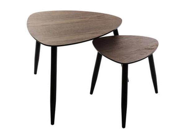 Σετ Ξύλινα Τραπεζάκια Σαλονιού 2 τεμαχίων σε Καφέ χρώμα, Side tables Side tables Τα side tables έχουν κερδίσει επάξια τη θέση τους στον κόσμο της διακόσμησης. Αυτό το σετ αποτελείται από δύο τραπεζάκια διαφορετικού μεγέθους σε ένα ιδιαίτερο σχήμα. Κατασκευασμένα από ξύλο διατίθενται σε καφέ χρώμα με πόδια σε μαύρη απόχρωση. Μπορείτε να τα τοποθετήσετε σε κάποια γωνία διακοσμώντας τα με κορνίζες, κάποιο στιλάτο πορτατίφ ή μπορείτε να τα χρησιμοποιήσετε για να ακουμπήσετε τον καφέ ή την εφημερίδα σας. Σε minimal design αυτά τα τραπεζάκια θα εξυπηρετήσουν πρακτικό και διακοσμητικό ρόλο ταυτόχρονα.​ Χαρακτηριστικά προϊόντος: Σετ με 2 τραπεζάκια Minimal design Υλικό: Ξύλο MDF Σταθερή κατασκευή Χρώμα: Καφέ με βάση σε μαύρη απόχρωση ​Μικρό τραπέζι: Πλάτος 40 cm - Βάθος 40 cm - Ύψος 40 cm Μεγάλο τραπέζι: Πλάτος 60.5 cm | Βάθος 60.5 cm | Ύψος 48 cm