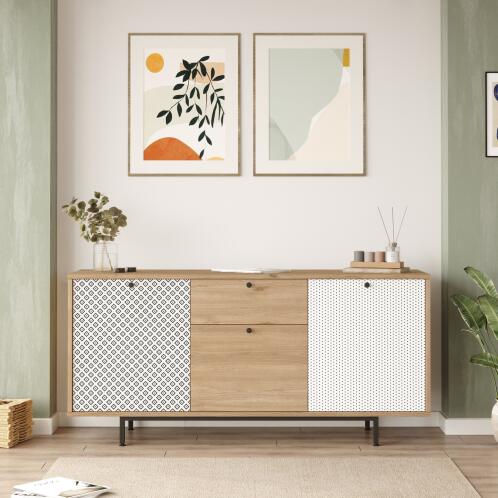Arte Libre Μπουφές Μοριοσανίδα/Μέταλλο 44.5x160x74.3cm Sussex Φυσικό/Λευκό.