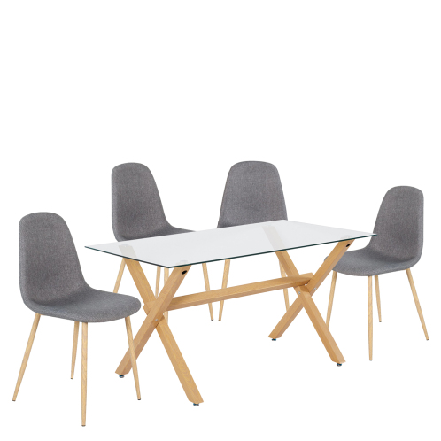 Σετ τραπεζαρία (4+1) BEE γκρι/φυσικό ύφασμα/μέταλλο/ξύλο 140x80x75cm.