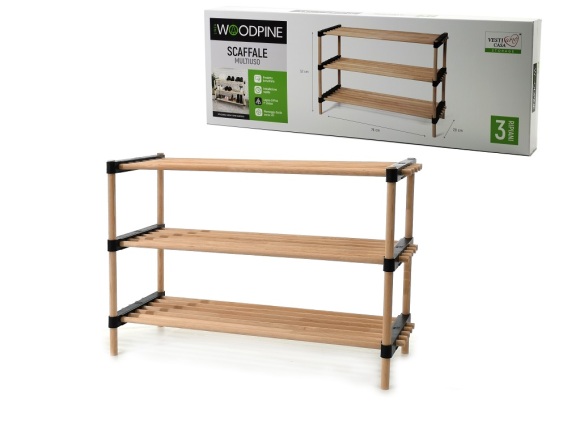 Παπουτσοθήκη με 3 ράφια για 12 ζεύγη φυσικό ξύλο 76x28x52cm.
