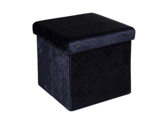 Βελούδινο Πτυσσόμενο Σκαμπό με Καπιτονέ μοτίβο και αποθηκευτικό χώρο σε Μπλε χρώμα, 31x31x30 cm 1