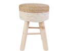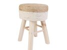 Ξύλινο Σκαμνί Σκαμπό με Πλεκτό Κάθισμα σε Μπεζ Χρώμα, 30x43x30 cm 3