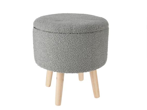 Ξύλινο σκαμπό με αποθηκευτικό χώρο και υφασμάτινο κάθισμα σε γκρι χρώμα, 35x35x40 cm