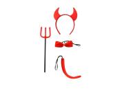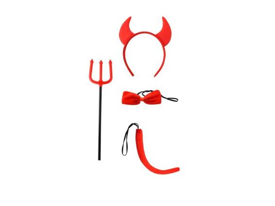 Παιδικό αποκριατικο σετ αξεσουάρ για διαβολάκι, 4 τεμαχίων σε κόκκινο χρώμα, Kids Devil Costume 4