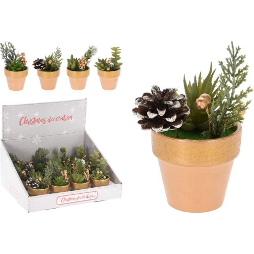 Άνθη εορταστικές ποικιλίες πλαστικό σε χρυσό κεραμικό γλαστράκι 7x7x12cm σε 4 ποικιλίες.