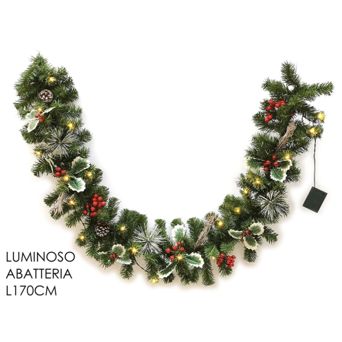 Γιρλάντα με κουκουνάρια γκι και berries φωτιζόμενη μπαταρίας πράσινο 170cm.