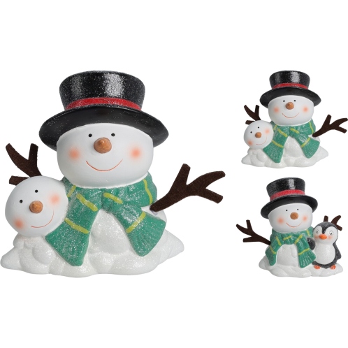 Χιονάνθρωπος με μαύρο καπέλο και glitter λευκό κεραμικό 14.5x9x15.5cm σε 2 σχέδια.