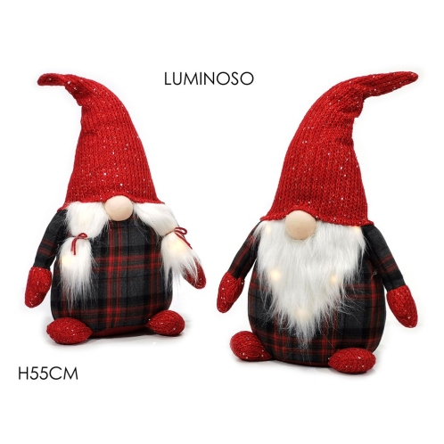 Νάνος φωτιζόμενος κόκκινο λούτρινο 55cm σε 2 σχέδια.