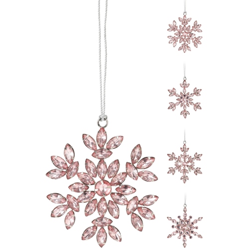 Στολίδι κρεμαστό χιονονιφάδα με πολύτιμες πέτρες ροζ μέταλλο Φ10cm σε 4 σχέδια.
