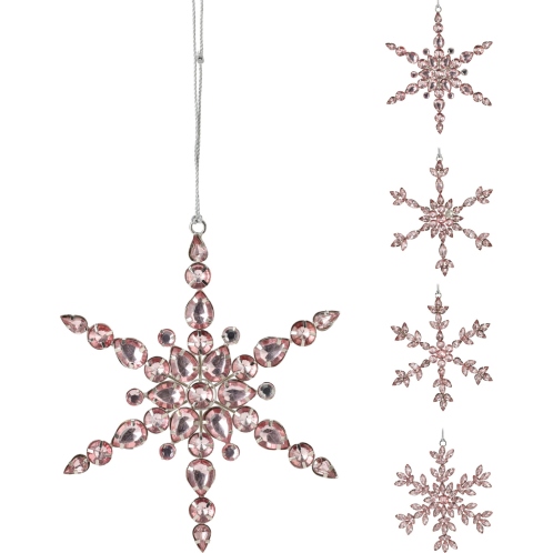 Στολίδι κρεμαστό χιονονιφάδα με πολύτιμες πέτρες ροζ μέταλλο Φ15cm σε 4 σχέδια.