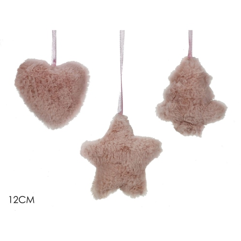 Στολίδι κρεμαστό ροζ γούνα 12cm σε 3 σχέδια.