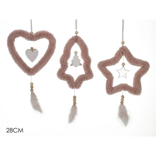 Στολίδι κρεμαστό ροζ γούνα/μέταλλο 28cm σε 3 σχέδια.