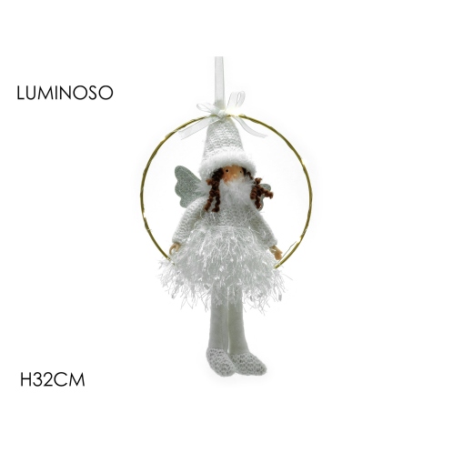 Στολίδι κρεμαστό στεφάνι με άγγελο λευκό/χρυσό μέταλλο/λούτρινο 32cm.